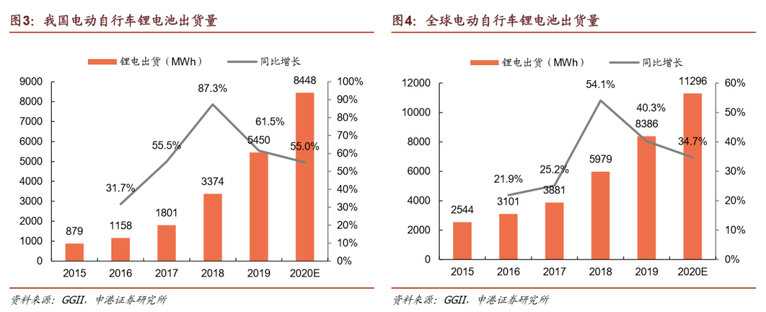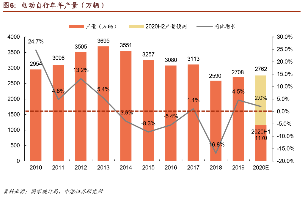 电动自行车市场相对成熟,年销量稳定在3000万辆左右,在政策和市场的双重推动下,预计2020年锂电池市占率将突破20%,未来三年锂电池电动自行车产量的复合增长率将超过30%。