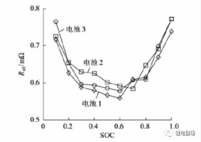 1)欧姆内阻主要是指由电极材料、电解液、隔膜电阻及各部分零件的接触电阻组成,与电池的尺寸、结构、装配等有关,其阻值的大小与充放电状态无关,亦几乎不受SOC状态的影响,仅随着温度的升高而降低。