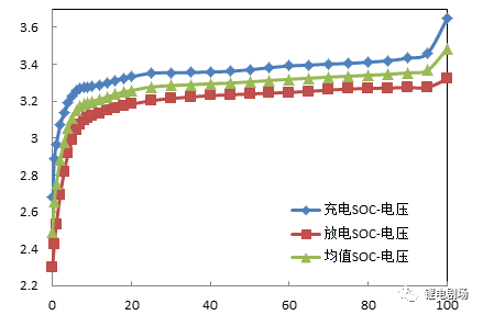 2  某磷酸铁锂电池的充/放电SOC-电压曲线